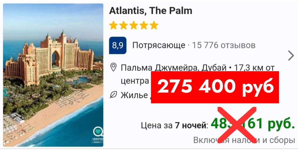 Мы не турагентство, и готовых комплексных предложений у нас нет. Вы выбираете самостоятельно подходящие вам отели/авиабилеты на Booking/Aviasales, а мы делаем их вдвое дешевле. А еще иногда выкладываем в Telegram-канал готовые отказные брони по бросовым ценам.