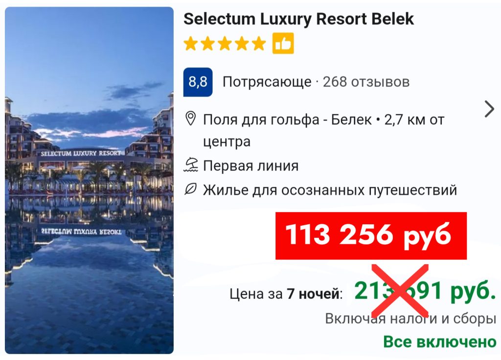 Также, у большинства отелей и агентств, с которыми мы сотрудничаем, ближе к дате заселения появляется множество отказных/незаполненных номеров, которые мы можем предложить своим клиентам по заниженным ценам.